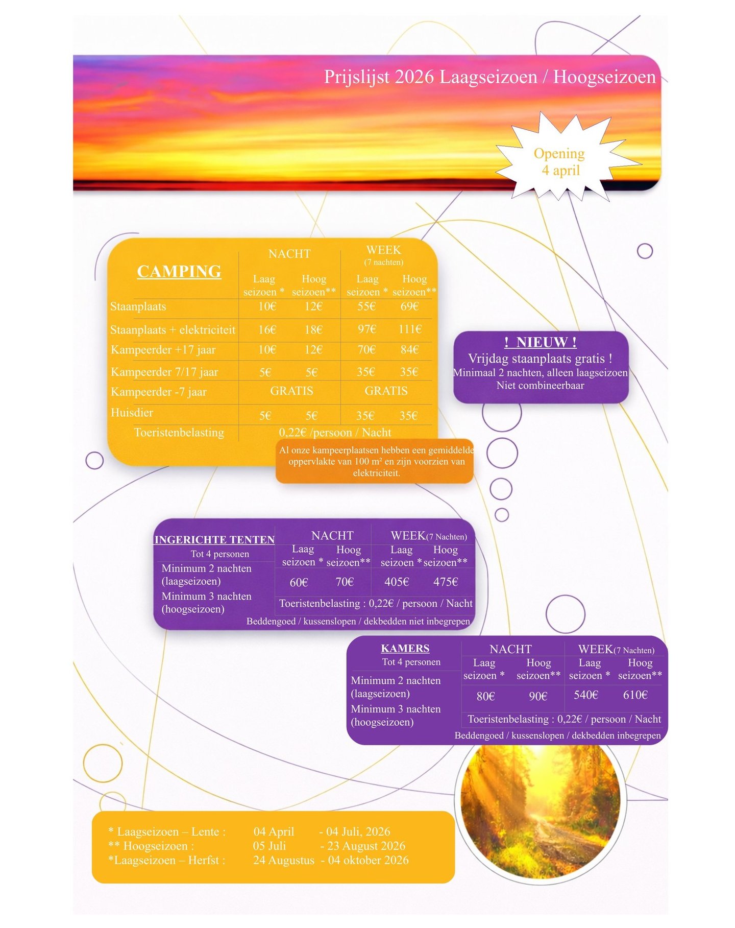 *Basse saison Printemps du 04 avril au 02 juillet 2026